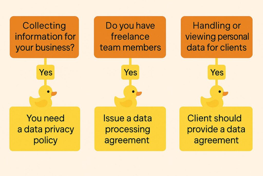 ✅ Bottom line: If you’re handling personal data for a client (for example, their mailing list, customer records, HR data, etc.), they should be issuing you with a DPA.